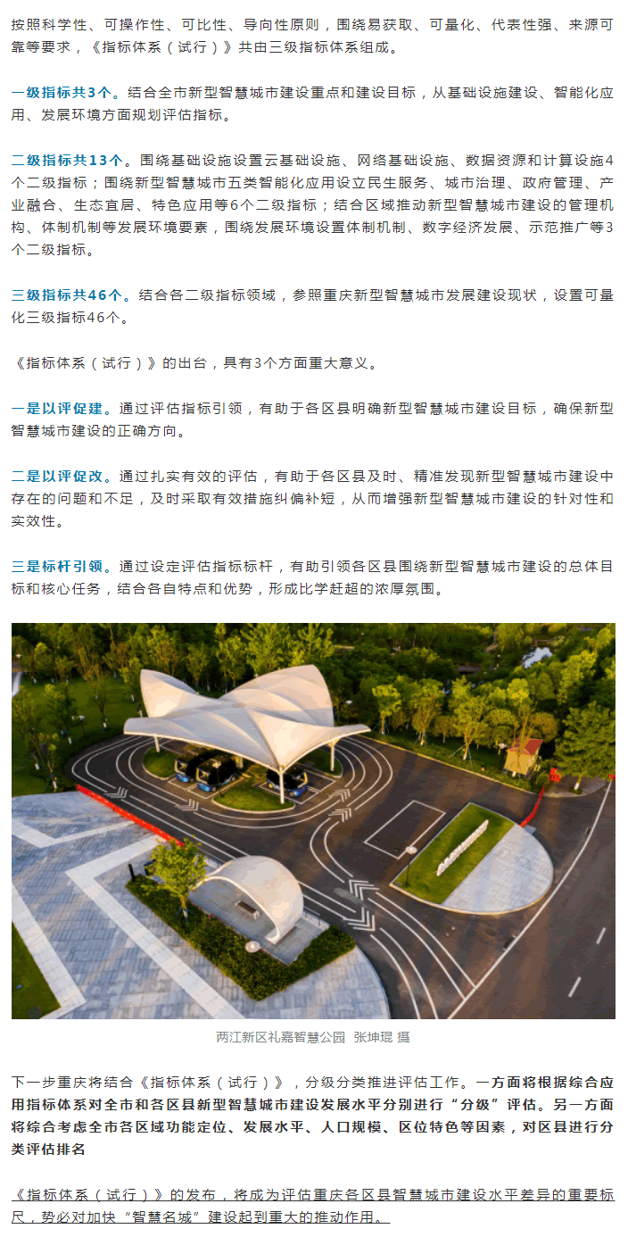 近日,重慶市新型智慧城市建設(shè)L導(dǎo)小組辦公室發(fā)布《重慶市新型智慧城市評(píng)估指標(biāo)體系(試行)》(以下簡(jiǎn)稱(chēng)《指標(biāo)體系(試行)》)。
