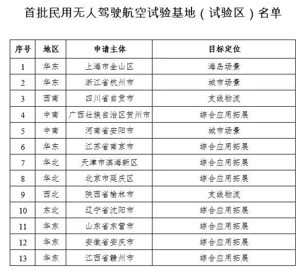民航局關(guān)于公布首批民用無人駕駛航空試驗(yàn)基地( 試驗(yàn)區(qū)) 的通知民航各地區(qū)管理局,各運(yùn)輸(通用)航空公司,各機(jī)場(chǎng)公司,空管局、運(yùn)行監(jiān)控中心、民航大學(xué)、飛行學(xué)院、管干院、航科院、民航二所、校驗(yàn)中心、信息中心,各協(xié)會(huì):